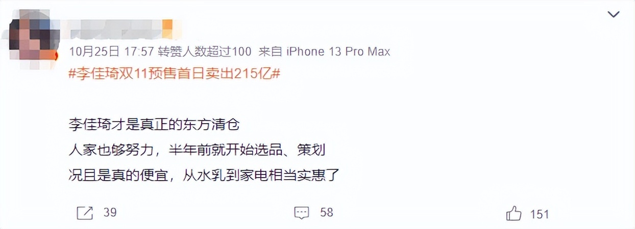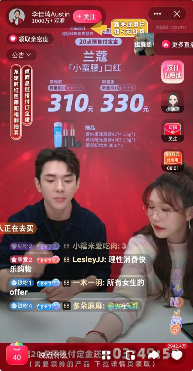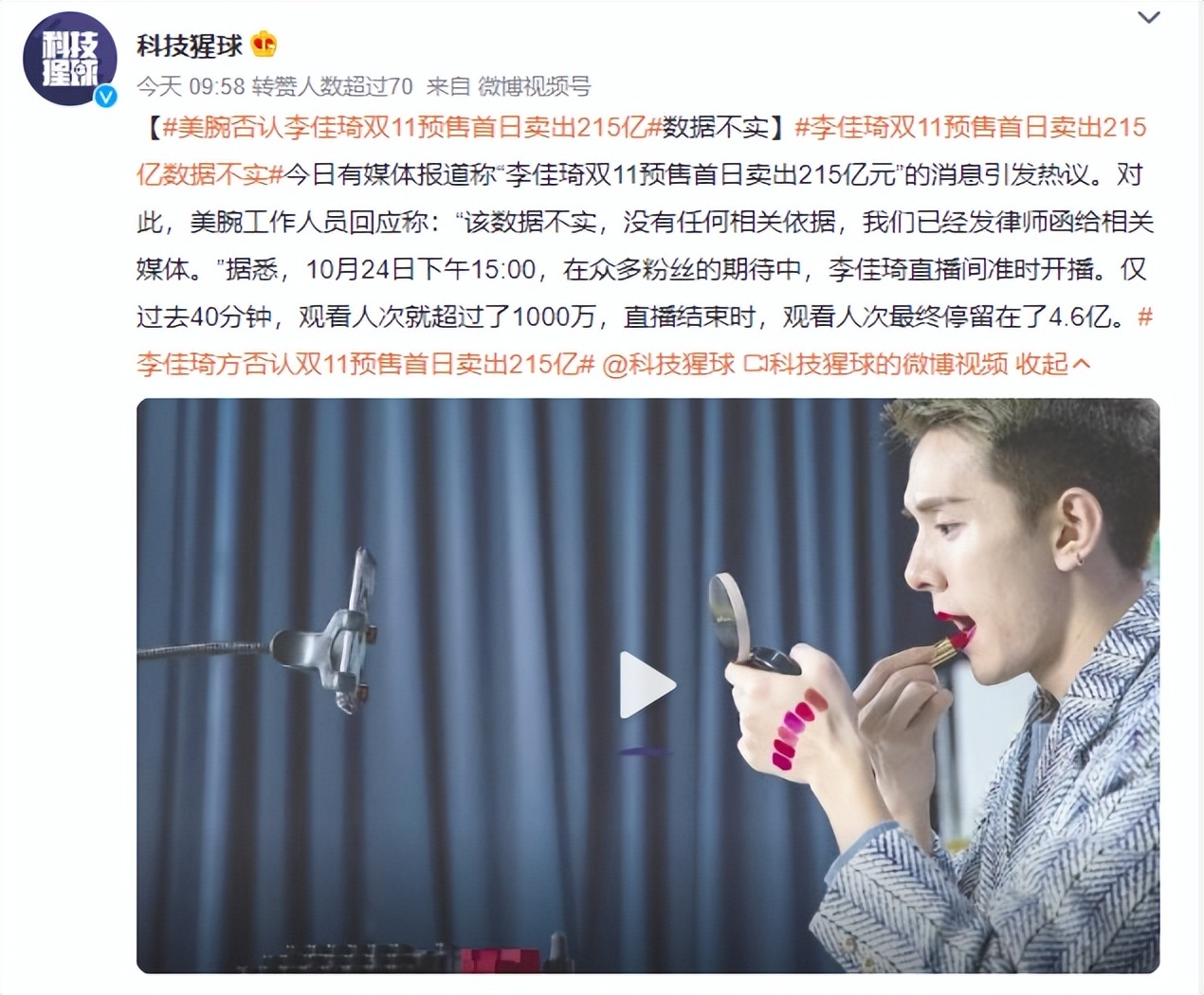 OMG ! 朋侪们,一觉醒来狐妹发现自己不熟悉数字了! 215 ......亿!元!咱就是说,不愧是李佳琦! 话又说返来,215 亿是什么概念呢? 以 2022 年广州年均匀工资 78045 元/人/年为例来盘算,215 亿相称于 27.55 万个广州人工作一年的收入!? 霎时间舆论一边倒向 215 亿的天价贩卖额,各方媒体放肆宣传李佳琦超神的赢利本事。 但看这字里行间的,狐妹怎么以为,颇有一股吃不到葡萄说葡萄酸的意味儿呢。 这不,李佳琦所属 MCN 公司美腕立马出来辟谣了:数据不属实。 并称他们已经发状师函给相干媒体。 先不说直播是不是真这么能搞钱,李佳琦自 6 月 3 日停播起,消散了 103 天才复出,一复出就整这么吓人的佳绩,确实是一个难过的炒作话题。 就算真卖了 215 亿,那狐妹也只会给他竖个大拇指并说一句哇塞~ 究竟狐妹也为李佳琦的古迹贡献了百来块钱,四舍五入,咱也是到场过百亿项目的人了,可不得吹一阵子牛逼~ 单单从斲丧者的角度来看,狐妹不以为这是可以妄加议论的事。 我们不妨往返顾下当晚直播的盛况。 10 月 24 日下战书 3 点,李佳琦直播间正式开播,仅已往 40 分钟,观看人次就高出了 1000 万。 近 10 小时的直播中,观看量逼近 4.6 亿,较客岁 2 亿多的结果翻了一倍。 4.6 亿次观看阐明什么标题? 我们还真不能藐视李佳琦。 此前他于 9 月 20 日重新出现在直播间带货时,就曾因人数过多,直播间一度被挤爆还进不去。 狐妹是以为,现在的斲丧者夺目着呢,挤破头都想进直播间抢购; 一方面是以为这羊毛薅得值,另一方面是李佳琦的品控信得过。 24 日近 10 小时的直播中,李佳琦直播间共上了 292 个链接。 而 292 件 SKU 中,仅有 21 件 SKU 非美妆护肤类产物,美妆护肤品类占比达 95.8 %。 美妆向来是女生们的阵地; 从 2020 年 Z 世代美妆护肤用户的性别结构来看,女性占比就到达了 77 % ,占据主导职位。 * 图片泉源艾媒咨询 李佳琦简直完全拿捏住了经济命根子好吗! 不吹不黑,李佳琦的业务本事照旧很可以的。 看过直播的朋侪应该都知道,他的口条清晰、轻巧; 毫无疑问李佳琦的天赋就是他入迷入化的谈锋。 商品的各类属性、用途都非常明白,尤其是美妆护肤品,哪种品牌的哪个系列对应什么功效,他都烂熟于心,少少翻车。 再加上极具笑剧结果的妖怪式洗脑口头禅 “ oh my god !” 、“买它买它就买它”,让多少女生毫无招架之力!; 李佳琦这个名字可以说已经自带热门。 电商圈不是不停有句话叫:“ 七分靠选品,三分靠运营” 嘛。 看看李佳琦粉丝的召唤就知道,李佳琦的选品本事也很精良。 在直播中亲身试色,给差别范例的人保举差别色号和质地的产物。 在他口中,护肤品不是冷冰冰的产物,他为其赋予了实用场景和购买意义。 乃至另有这么一种说法:“李佳琦选品,我放心。” 这么说吧,狐妹照旧头一次见粉丝粘性这么强的主播。 至少站在斲丧者的角度,李佳琦的好评是要远宏大于差评的。 215 亿的直播数据临时不言,就冲迩来双十一霸屏热搜的声量来看,直播的话题大概还要咆哮一阵子。 与此同时,“隐退”的抖音顶流罗永浩也成了热议的话题。 24 日罗永浩淘宝首播当晚,直播间累计观看人数仅 2600 万,据有关平台估算,罗永浩初次淘宝直播带货总额约为 2.1 亿元。 于是乎,各种关于罗永浩不敌李佳琦的言论层出不穷; 说是可以说,只是肆意地捧杀和打压就没有须要了。 我们可以不信数据,但观众的眼睛是雪亮的。 狐妹说这么多,固然不是无脑为李佳琦打 call 啦 ; 岂论是李佳琦照旧罗永浩,直播的硕果都是积极得来的,旁人没什么可酸的; 与其阴阳怪气地议论,倒不如关闭直播间,不看就完事了,你们说是吧? 参考资料: 上观网:李佳琦单日卖出215亿?公司告急否认!罗永浩瞄上夫君们的钱包 腾讯网:双十一预售,售出215亿元?李佳琦回应 快科技:双11开启 罗永浩淘宝直播首秀:观看人次破万万 微博截图、艾媒咨询截图、百度截图 编辑:桃子 |